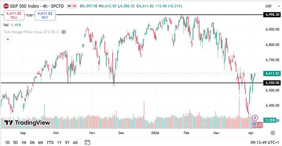 Since that reversal, price action has been strong, rising into 6,600 on April 2nd. We expect the market will now test the top end of channel resistance at 6,650. We believe a short squeeze is likely once that level breaks, even as the Iran War continues and oil prices push toward recent highs. The reality is that the Iran War will probably persist for at least another two to three weeks, but the drivers of US equity markets, which are the large cap technology stocks, continue to accelerate their growth in the background.